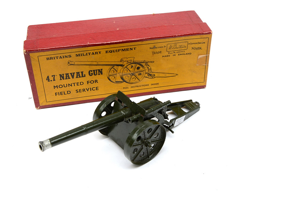 Modello di cannone in metallo della W. Britain, cannone navale da 4.7 pollici. Ottimo stato conservativo, in confezione originale
