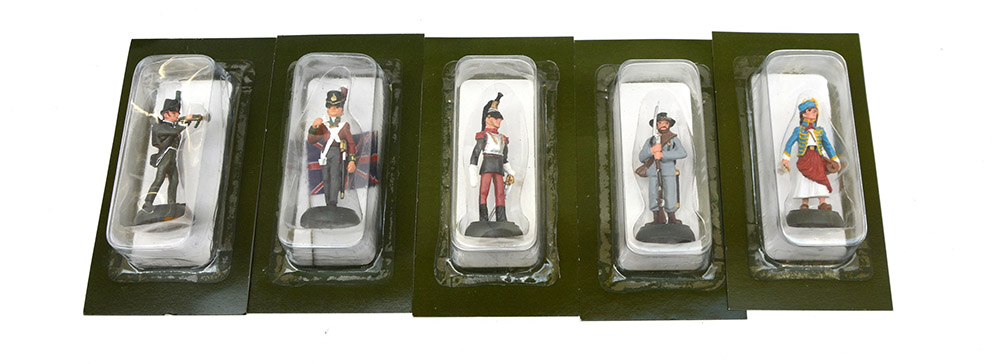 Lotto di diciotto soldatini in piombo dipinti, con prevelenza di uniformi napoleoniche di differenti Stati, produzione recente, in confezione