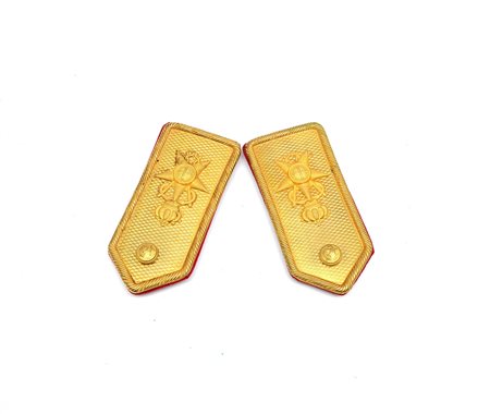 Coppia di controspalline in metallo dorato da Ufficiale del Corpo Sanitario. Regio Esercito, Italia 1930/40