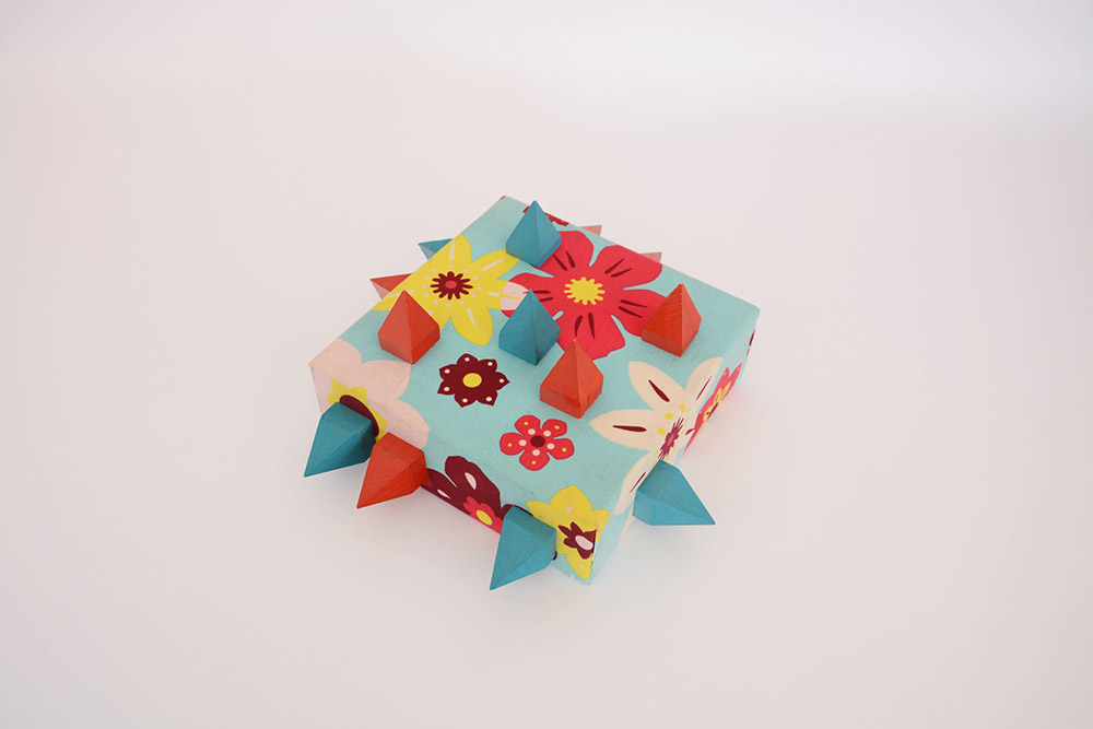 Ignoto "Composizione" assemblage su tela appilcata su pannello (cm 23x23) (lievi difetti)