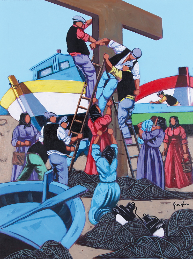 GIUSEPPE UZZACO Palermo 1932 Deposizione olio su tela cm. 80x60, firma in...