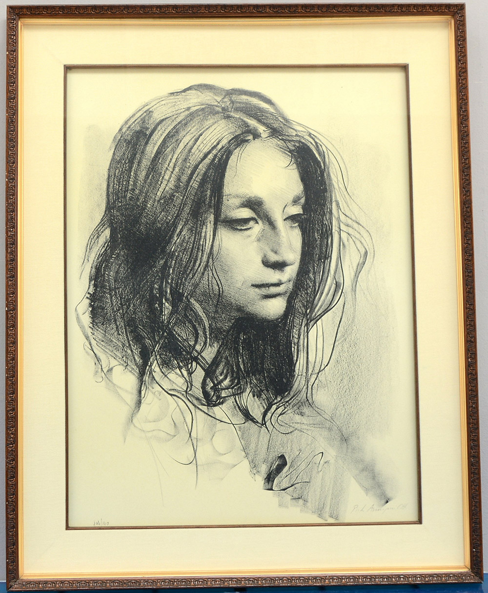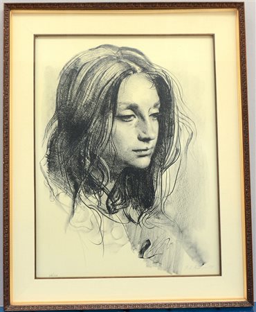 Pietro Annigoni 1910 1988 "Fanciulla" litografia (cm 64x48 c.) numerata 104/140 e firmata in basso in lapis. Provenienza: Cocorocchia & Carrara Editori d'arte, Milano(si allega scheda). In cornice
