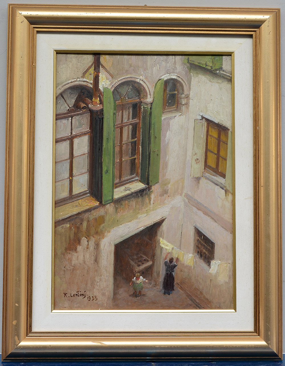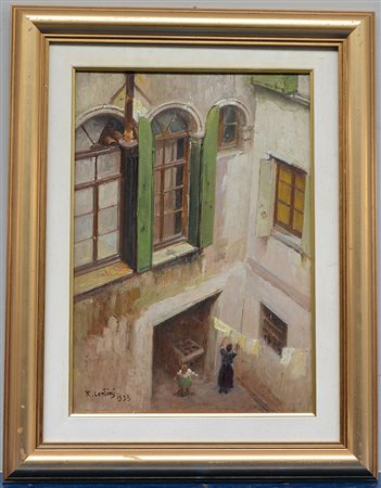 Lentini Rocco Palermo 1858 Venezia 1943 "Cortile" 1933 olio su compensato (cm 50x35) firmato e datato in basso a sinistra, in cornice