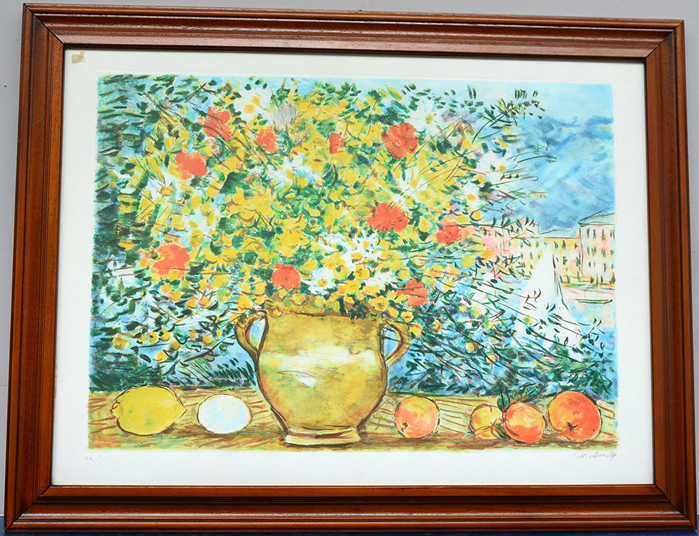 Michele Cascella Ortona 1892 Milano 1989 "Vaso con fiori" prova d'artista (cm 59x79) firmata in basso a destra, in cornice