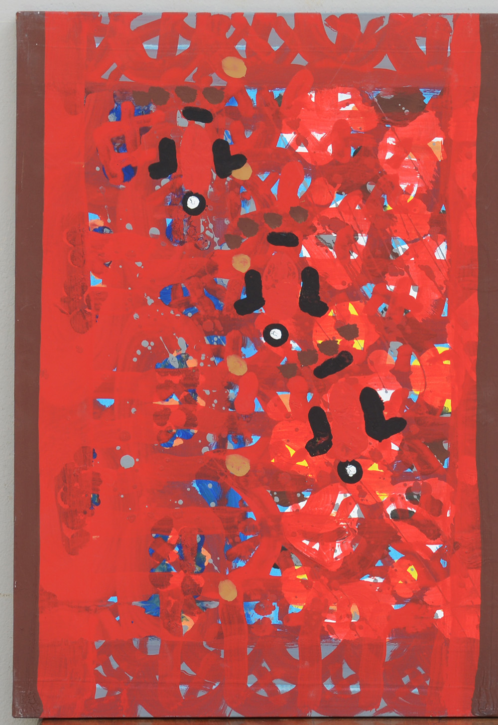 Gastone Biggi Roma 1925 Tordenaso 2014 "I cardinali" 2010, pittura industriale su tela (cm 50,2x35). Firmato, datato, titolato e dedicato al retro. (n. Archivio 5646, al retro)