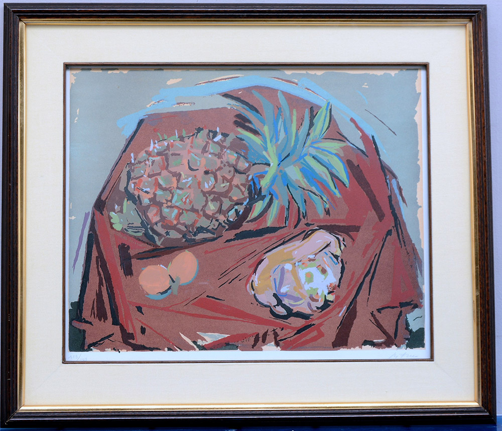 Achille Funi Ferrara 1890 Appiano Gentile 1972 "Ananas" litografia (cm 44x63) numerata 113/148 e firmata in basso in lapis. Provenienza: Cocorocchia & Carrara Editori d'arte, Milano(si allega scheda). In cornice