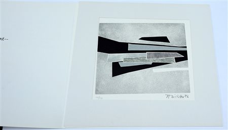 Hans Richter Berlino 1888 Locarno 1976 "Dymos", sei acquaforti – acquetinte, numerate 115/115 e firmate a matita in basso (cm 40x43,5). Con una poesia di Hans Richter. Edizione "Ad Personam" come indicato nel colophon (dalla 100/100 a 115/115). In cofanetto editoriale telato.