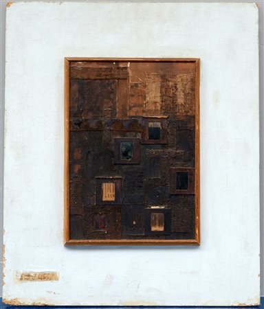 Dino Baranzelli 0 0 "New York West 45th Street (I Sing America)" collage polimaterico su tavola montato su pannello(cm 36x26, pannello cm 60x50). Al retro etichetta Premio San Fedele 1963 (difetti). Bibliografia: G. Kaisserlian (a cura di), "Premio San Fedele 1963 per giovani pittori", 16 ottobre - 1 novembre 1963, Centro Culturale San Fedele, Milano (con titolo "I Sing America").