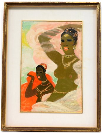 Salvatore Fiume, "Senza titolo", olio su acetato applicato su carta dorata (cm 53x35) firmato in basso a destra. In cornice.