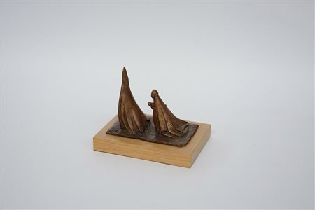 Giacomo Manzù Bergamo 1908 Ardea 1991 "Papa Giovanni e il Cardinale", scultura in bronzo (h cm 13.5) su basamento ligneo, es. 93/99 Post Mortem. Opera accompagnata da certificato di autenticità del 22 dicembre 2000 (Archivio VA6201C).