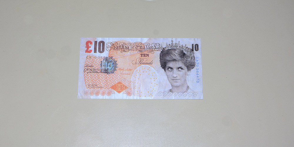 Banksy. 1974 "10 pounds" Stampa litografica (7,5x14,5)