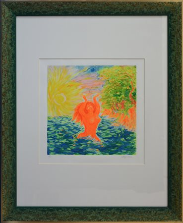 Aligi Sassu Milano 1912 Palma De Mallorca 2000 "Nudo" litografia a colori (cm 43x43) firmata e numerata II/L. In cornice