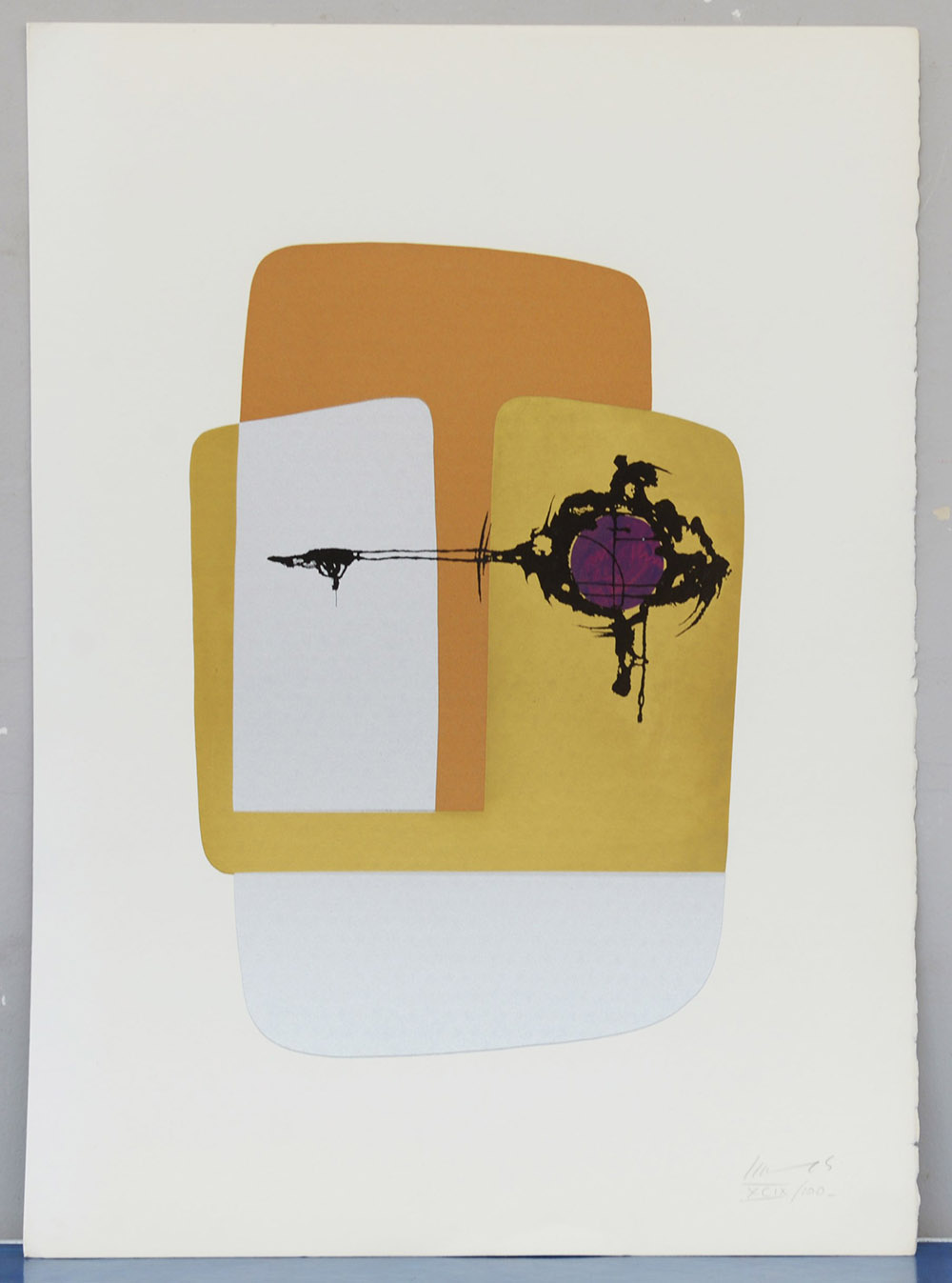 Edgardo Mannucci Fabriano 1904 Arcevia 1986 "Composizione" serigrafia (cm 66,2x47,2) firmata e numerata XCIX/100 in basso a destra in lapis. Timbro a secco "Arte Nuova Oggi – AON".