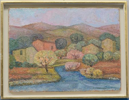Vito Melotto 1928 0 "Il torrente" olio su tela (cm 30x40) firmato in basso a...