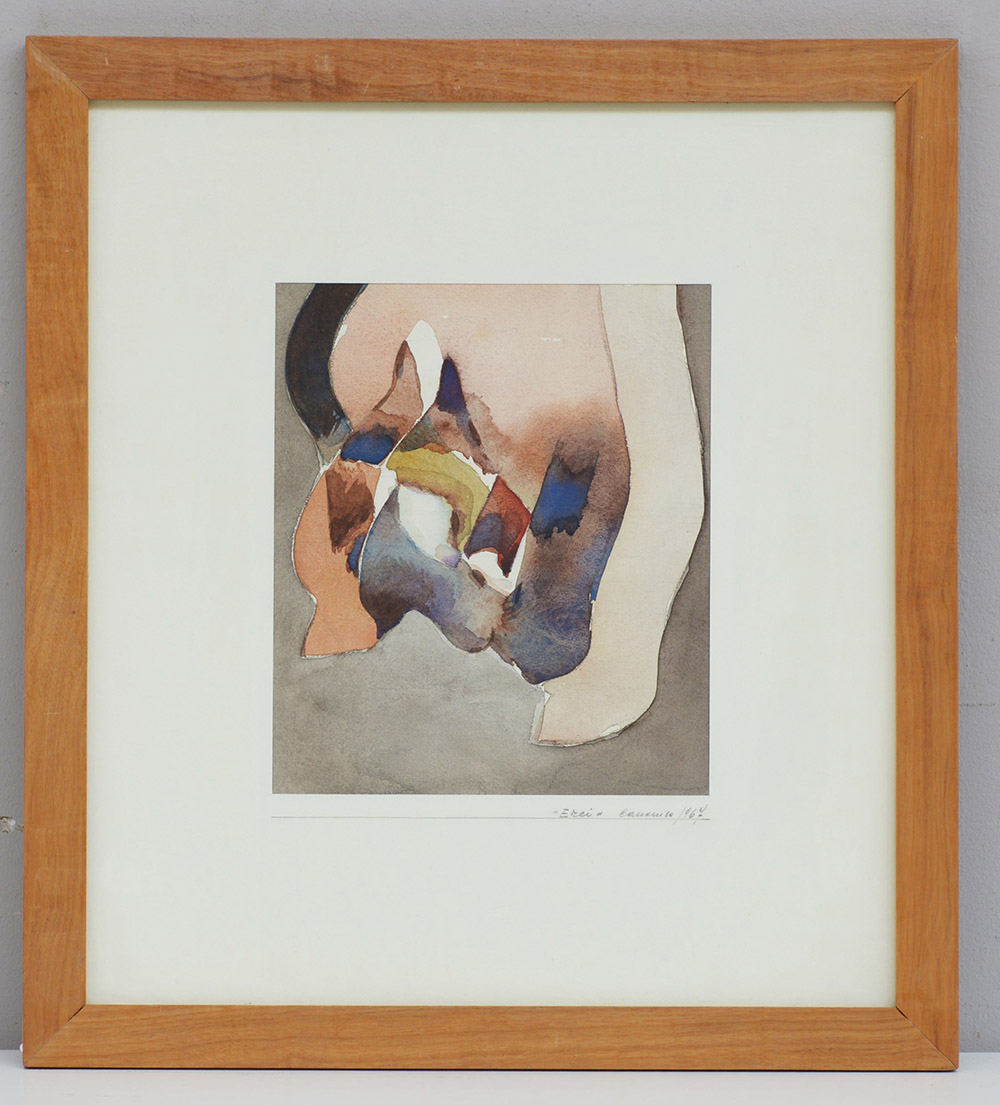 Felice Canonico Messina 1922 Milano 1996 "Erei" 1967 acquerello su carta, (cm 24,2x20,5) Titolato, firmato e datato in basso a destra. In cornice