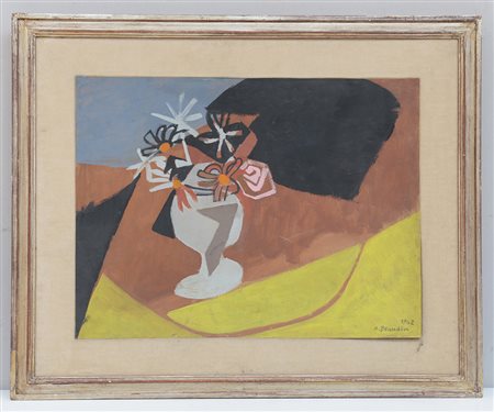 André Beaudin "La Rose Rose" 1942 olio su cartone (cm 49,7x64,4) Firmato e...