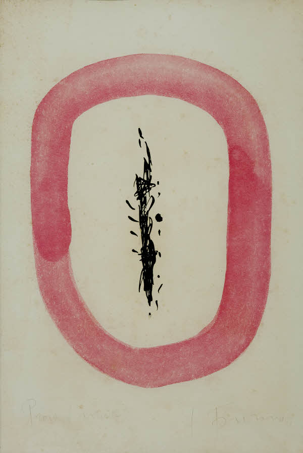 Lucio Fontana - Senza titolo - litografia,es. p.d.a. cm. 49x33. L ’opera presenta alcune macchie di umidità. Firma in basso a dx