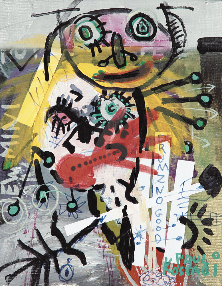 PAUL KOSTABI Whittier (California) 1962 Bowling for soup, 2009 tecnica mista su tela cm. 35,5x28, firma in basso a destra, titolo e firma al retro, dichiarazione d'autenticità dell'artista su foto.
