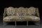 Divano a tre posti in noce. Schienale e montanti sagomati e intagliati a fiori e tralci vegetali. Fascia anteriore mossa intagliata a mazzi di fiori e conchiglie. Gambe sagomate intagliate a foglie. Rivestito con antica stoffa a piccolo punto a fiori e foglie. Sec. XVIII (largh. cm 192) 18th-century carved walnut sofa covered with needlepoint fabric