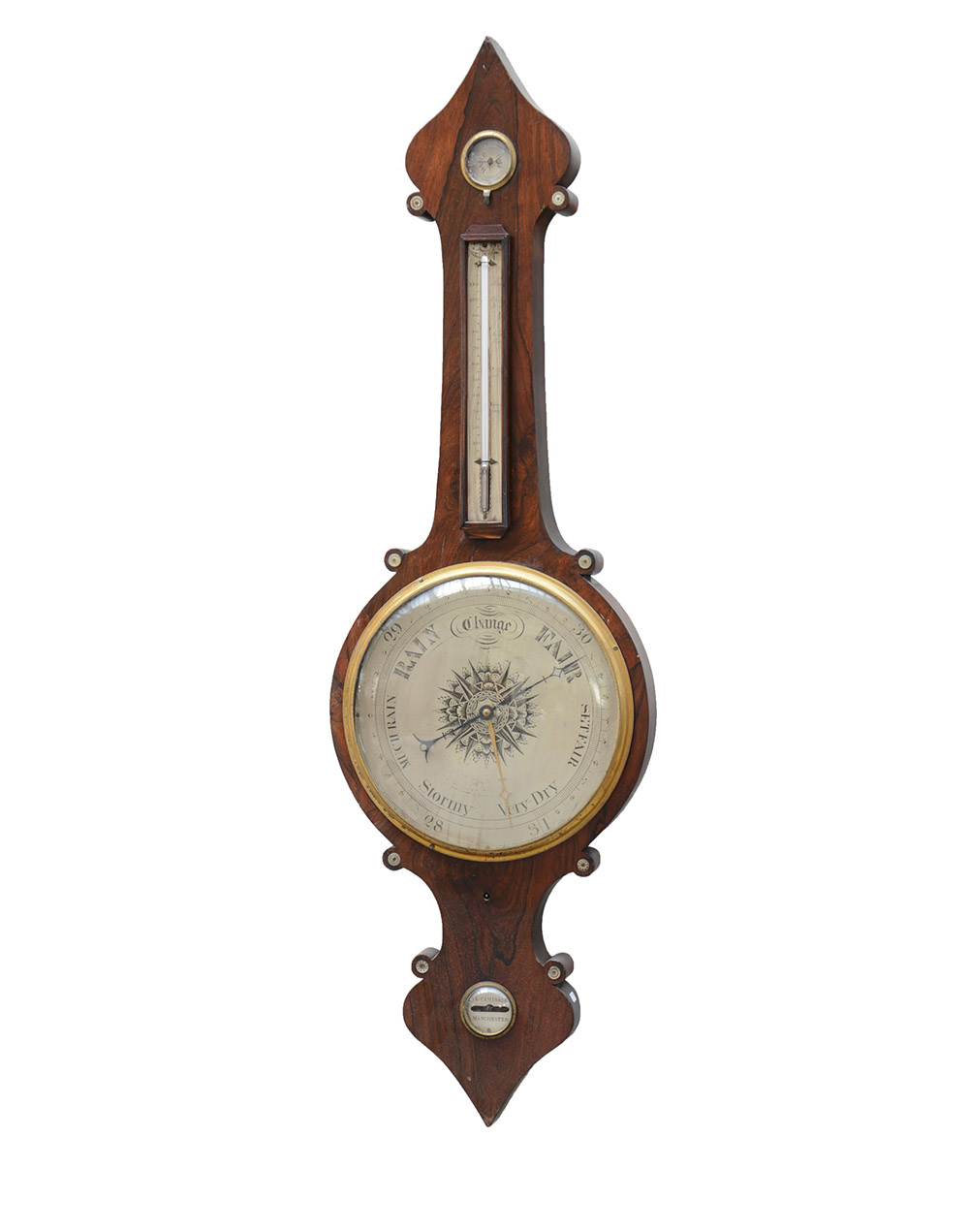 Barometro-termometro con cassa in mogano (h cm 118) firmato L. Caminada, Manchester, Inghilterra secolo XIX (difetti e mancanze)