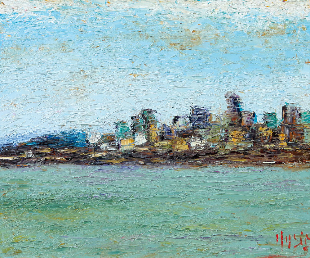 ROBERTO MASIA Iglesias (Ca) 20/02/1958 Mattino a San Francisco olio su tela cm. 50x60, firma in basso a destra, titolo, firma, etichetta, timbri e archivio dell'artista al retro.