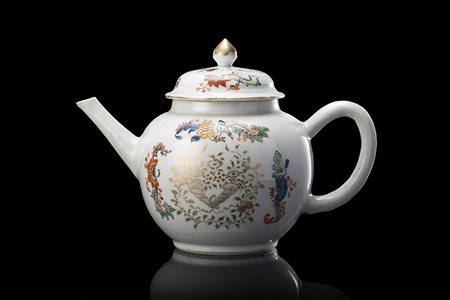 Teiera con coperchio e decorazione doucai e arricchimento in oro europeo Cina, sec. XVIII A doucai teapot and cover with European gilt embellishments China, 18th century (h. cm 17,5)