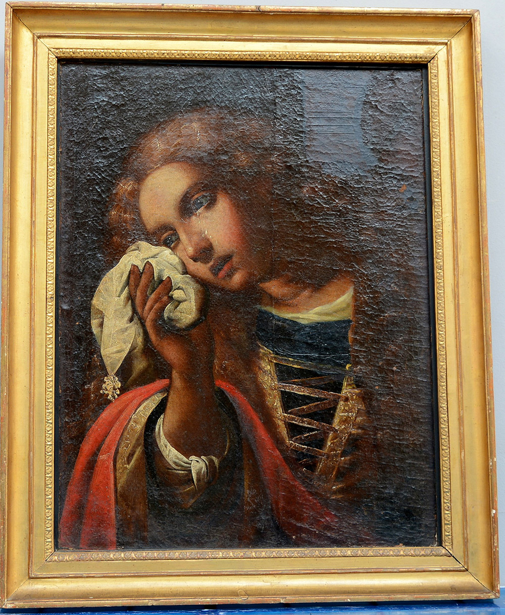 Scuola del secolo XVIII - "Ragazzo gemente", olio su tela (cm 74x57), in cornice antica (difetti e restauri)