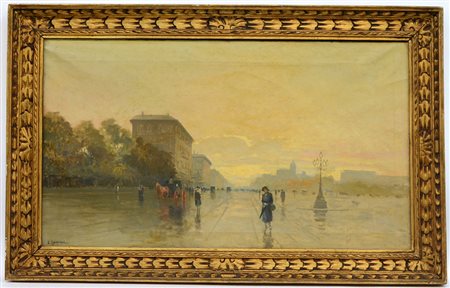 Colantani E. "Scorcio di piazza", olio su tela (cm 57x100) firmato in basso a...