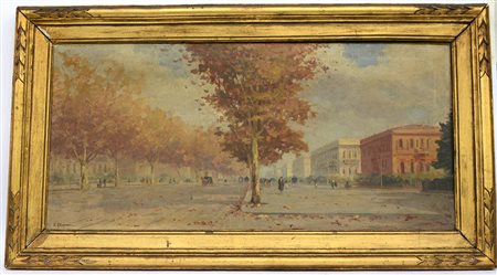 Colantani E. "Scorcio di città", olio su tela (cm 50x104) firmato in basso a sinistra, in cornice (difetti)