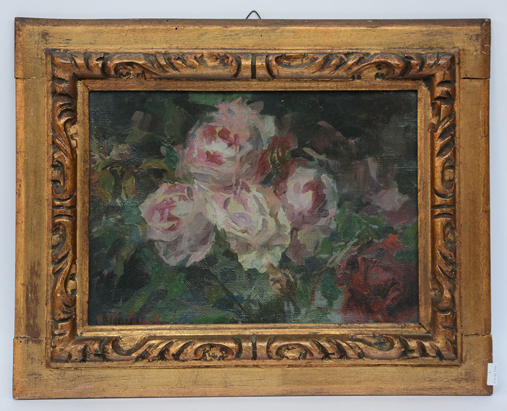 Mario Maldarelli "Rose" 17.6.23 olio su tela ripiegata su due lati (cm 26x36) Firmato e datato in basso a sinistra. In cornice