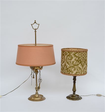 Lotto composto da una lampada fiorentina montata a luce elettrica e una lampada da tavolo ad una luce, in bronzo (difetti)