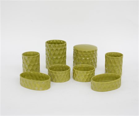 Set da bagno in ceramica verde composto da otto contenitori (difetti)