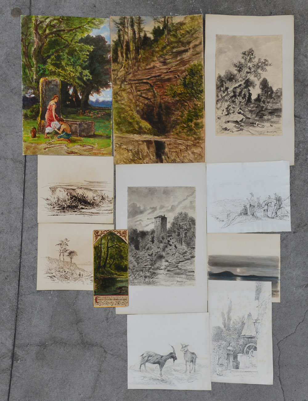 Giuseppe Puricelli Guerra Gallarate 1832 Casirate D'Adda 1894 Cartelletta contenente undici tra disegni, bozzetti, incisioni ed acquarelli per lo più raffiguranti paesaggi, molti firmati (difetti)