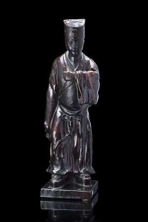 Manifattura della fine del sec. XIX. "Figura di dignitario cinese" scultura...