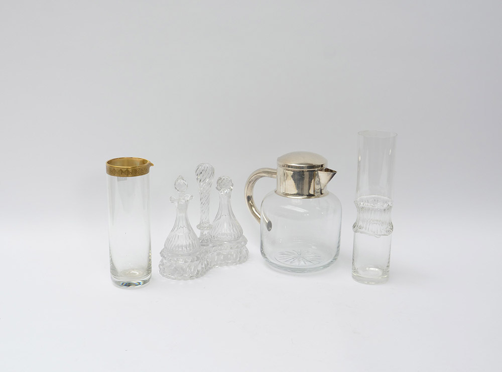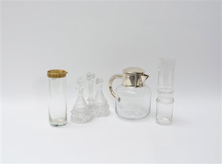 Lotto composto da vaso in vetro Rosenthal, Studio-Linie serie "Manschette" due versatoi e un'oliera (difetti)