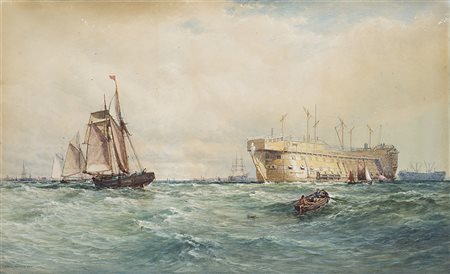 Arthur Wilde Parsons 1854 1931 "Velieri" 1890 acquerello su carta (cm 56x92) Firmato e datato in basso a sinistra (difetti) In cornice