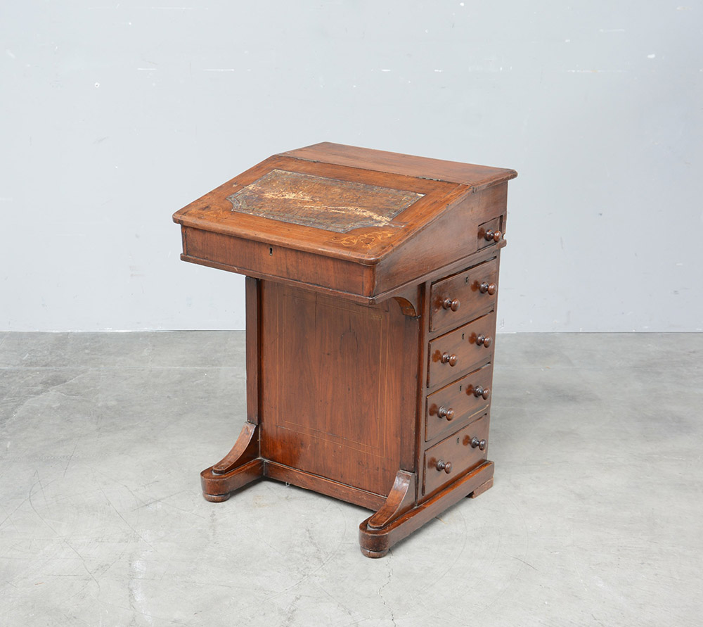 Davenport in noce con piano filettato ed inserto in pelle (cm 51x72x51) (difetti)
