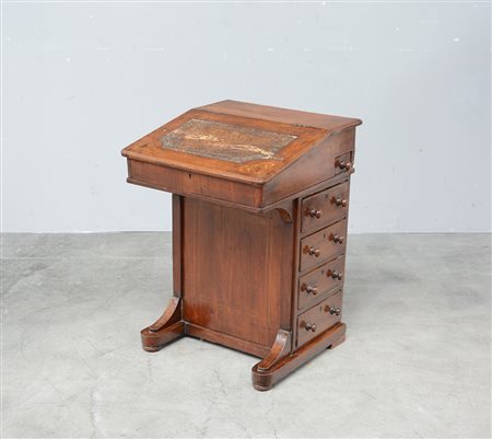 Davenport in noce con piano filettato ed inserto in pelle (cm 51x72x51)...