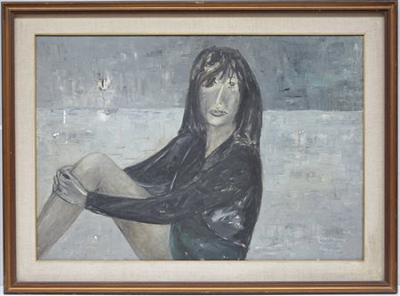 Primo Minervino "Donna seduta", olio su tela (cm 70x100) In cornice (difetti)