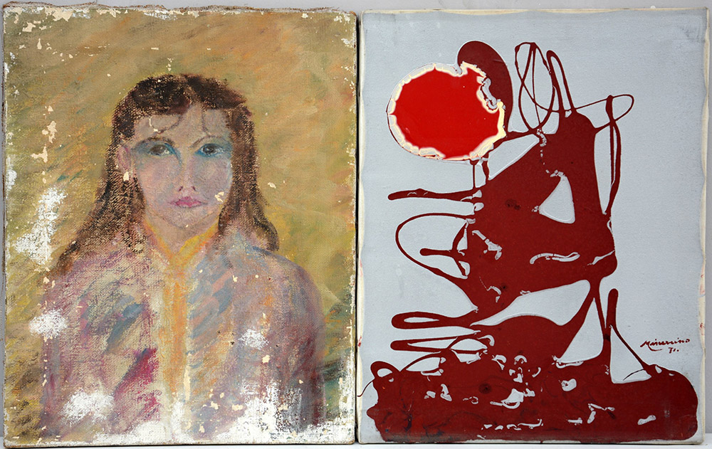 Primo Minervino Lotto composto da due dipinti raffiguranti soggetti diversi (cm 50x40) Firmati (difetti)