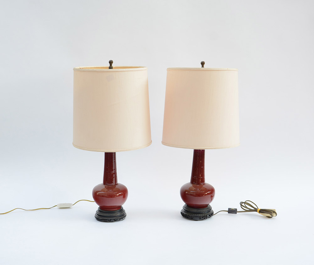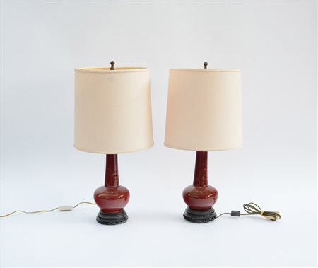 Coppia di vasi a bottiglia con invetriatura sang-de-boeuf montati a lampada Cina, sec. XVIII (h. 22 cm.)