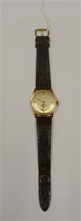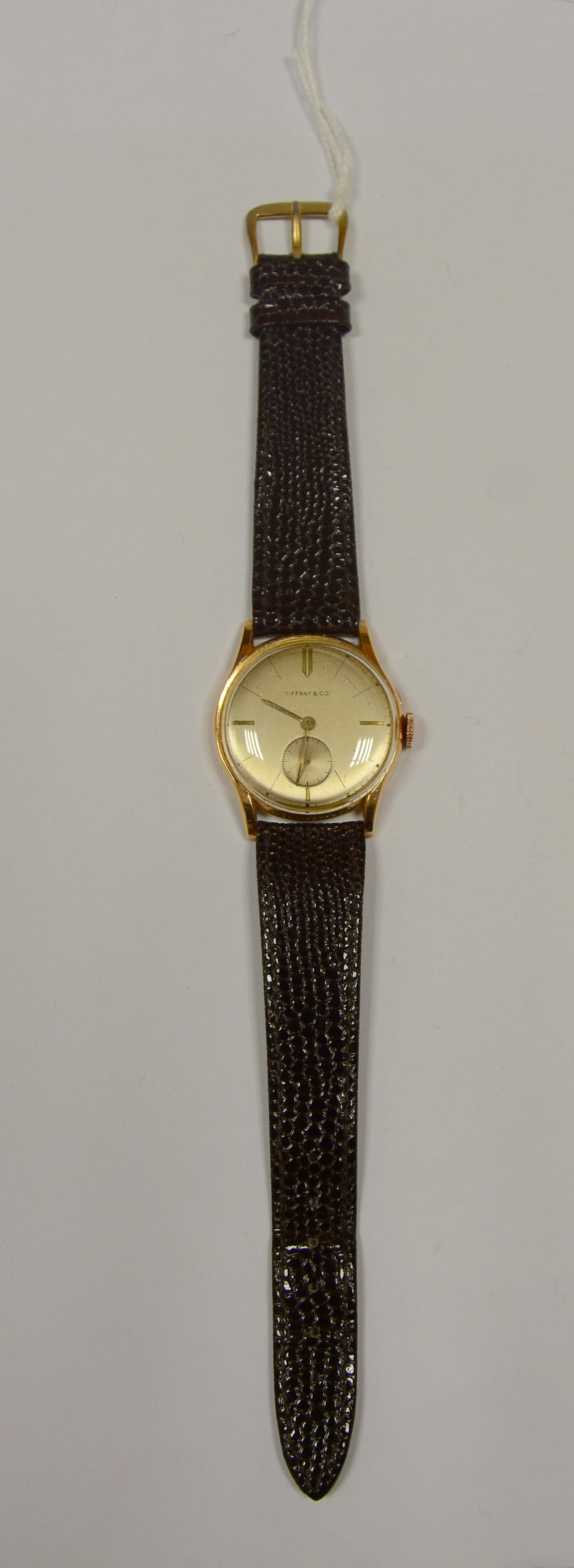 TIFFANY & CO Orologio da polso da uomo in oro 18K, e metallo, quadrante firmato, movimento con carica automatica. Quadrante argentato con indici, quadrantino ausiliario per i secondi alle ore sei. Cassa n. 2713 (d mm 33) (difetti)