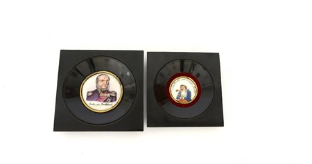 Manifattura tedesca sec. XIX. Due placchette in porcellana decorate in policromia a figure. Misure diverse