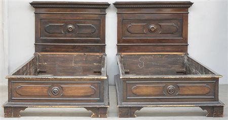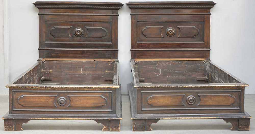 Letto a due piazze con testata e pediera decorati a motivi rinascimentali (difetti)