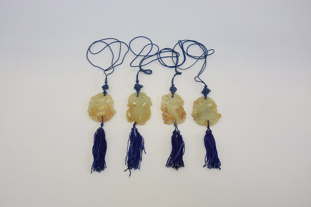 Gruppo di quattro placche intagliata in giada a nefrite decoarti una con...