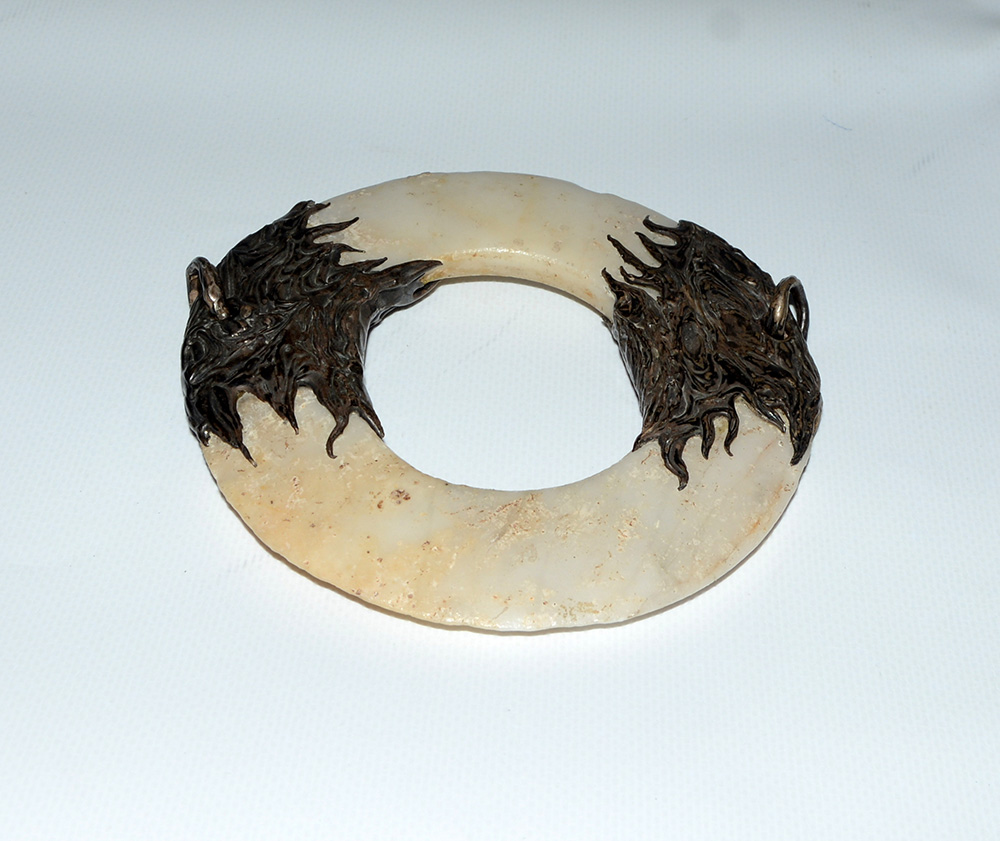 Disco bi in giada con montatura in metallo (difetti) Cina, sec. XX (h. 15 cm.)