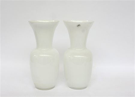 Coppia di vasi a balaustro in vetro bianco opacizzato (h cm 35)
