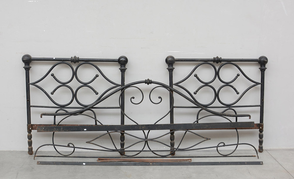Divano letto in ferro battuto laccato nero con pomoli torniti (difetti e mancanze)
