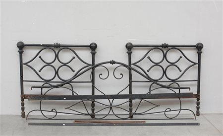 Divano letto in ferro battuto laccato nero con pomoli torniti (difetti e...