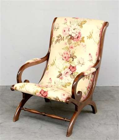 Poltrona da riposo con braccioli e gambe sagomate ricoperta con tessuto a fiori (difetti)